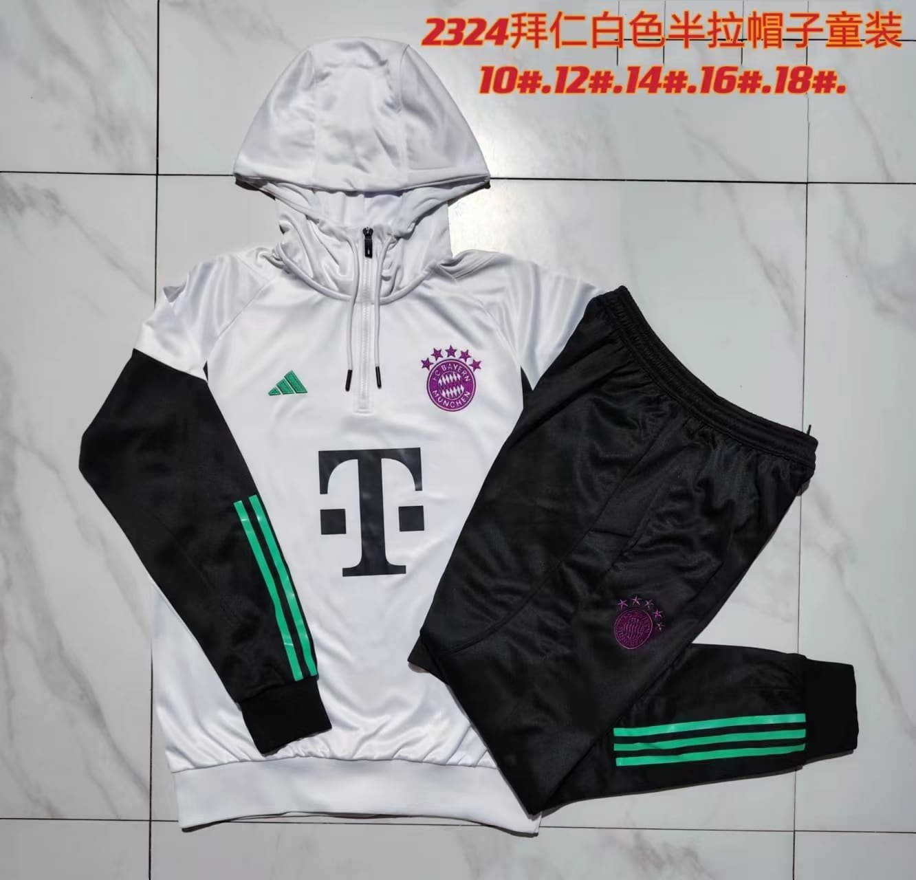 E746 23/24 Bayern short zipper white with cap kids kit 10-18