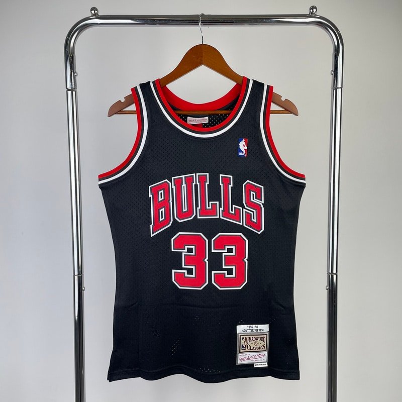 MN hot-pressed retro jersey: SW Bulls 98 season black No. 33 Pippen